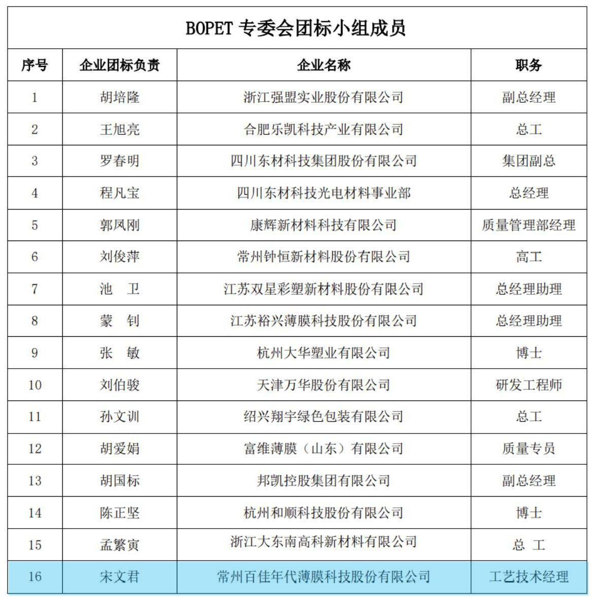 On September 13th, the BOPET Special Committee of China Plastics Association published the "BOPET Special Committee Working Group Member List". Changzhou Betterial Film Technology Co., LTD. (hereinafter referred to as "Betterial") officially joined the BOPET Working Group, and participated in the preparation of 4 standards in the first batch of group bidding projects in 2022. Jointly study and discuss BOPET standardization work with outstanding enterprises in the industry, coordinating to promote the localization process of high-end BOPET products.