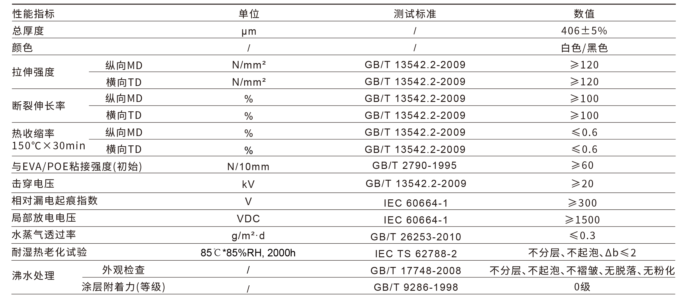 由百佳年代自主研发的BR膜做为EVA粘接层,高耐候PET作为支撑层,水汽阻隔膜作为阻水中间层,经复合而成的光伏背板。