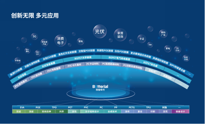 百佳年代便是其中的优秀代表。公司相关负责人表示,在“碳中和”浪潮下,他们保持战略定力,深度布局新能源产业,注重技术研发和差异化创新,聚合多方创新力量成功构建“基膜种类齐全、制造工艺齐备、胶粘剂及涂层材料研发能力突出”的功能性薄膜技术平台。实现了从薄膜基材到功能薄膜产品的完整一体化制造链条,是行业内少有的建立起功能性薄膜技术平台,且各个平台技术均相对完善的企业。”他强调,依托完善的技术平台,百佳年代将以更具竞争力的制造成本、更稳定的产品品质、更快速的响应能力,满足市场多样化应用需求。