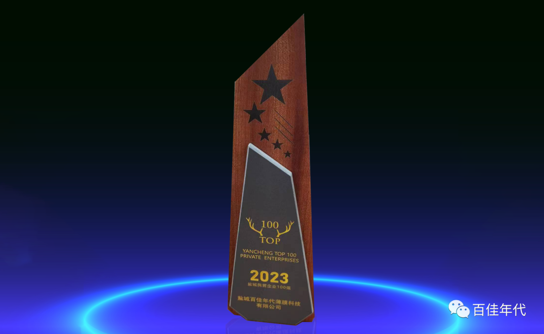 6月29日,为表扬优秀民营企业,提振民营企业家发展信心,厚植盐城民营企业“敢为、敢闯、敢干、敢首创”沃土,盐城市工商联、市发改委、市工信局、市市场监管局等八部门联合主办的盐城民营企业百强发布会在盐成功召开。盐城百佳年代薄膜科技有限公司荣登2023盐城民营企业百强榜单第18位!