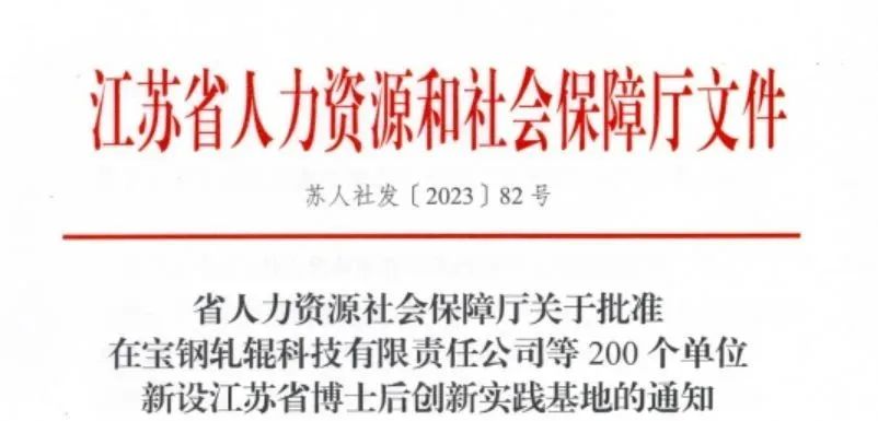 近日,根据《江苏省人力资源社会保障厅关于批准在宝钢轧辊科技有限责任公司等200个单位新设江苏省博士后创新实践基地的通知》(苏人社发〔2023〕82号)精神,经专家评审,百佳年代成功获批“江苏省博士后创新实践基地”,标志着公司高层次人才培养平台建设迈入省级行列。