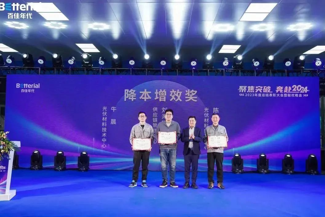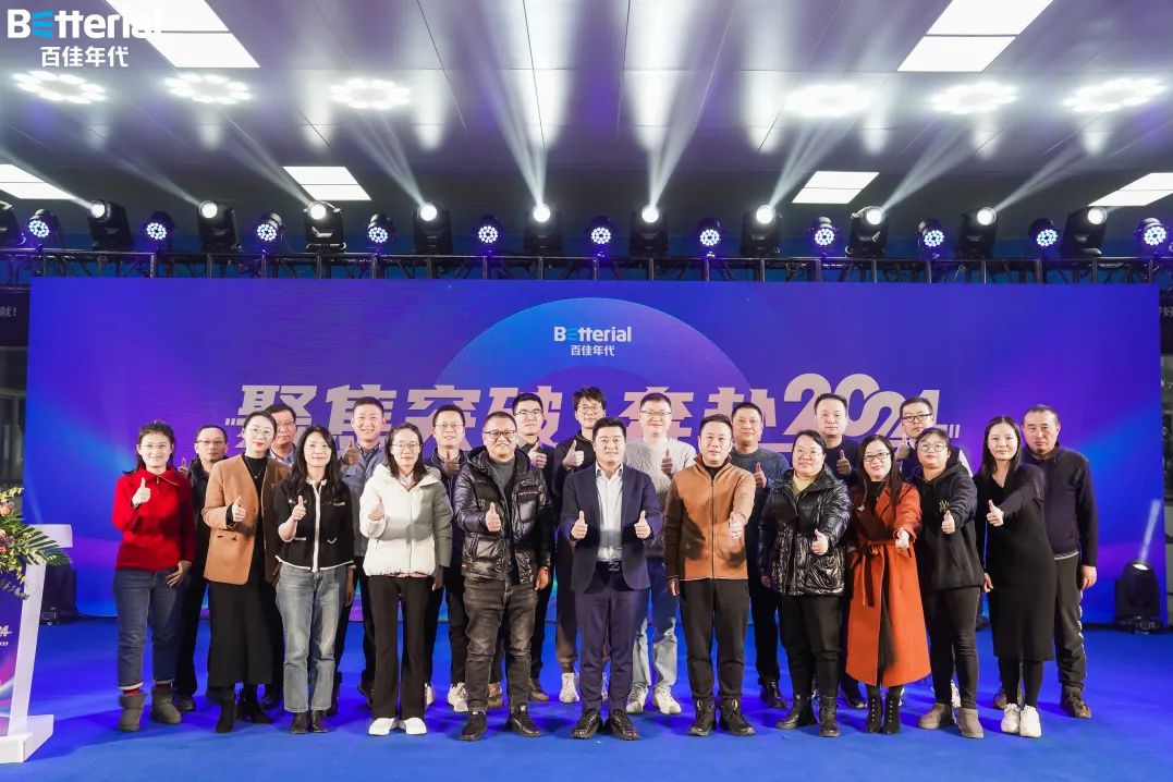 1月26日,以“聚焦突破,奔赴2024”为主题的百佳年代2023年度表彰大会暨联欢盛典在常州总部隆重举行,董事长茹正伟与常州总部全体员工、各基地和分子公司员工代表共聚一堂,共襄盛宴。百兴集团创始人茹伯兴、集团总经理杜桂珍受邀出席本次盛典。