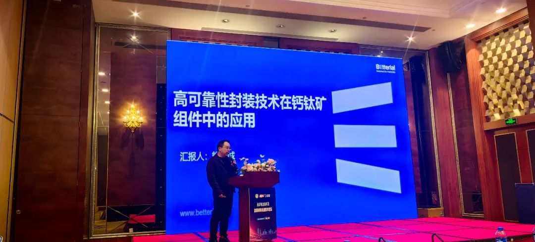 不久前,在江苏省光伏行业协会组织的“2024 AIPV 光伏数智大会”上,百佳年代首席技术官熊唯诚博士受邀出席并展示了最新的应用于钙钛矿及叠层钙钛矿组件的高可靠性封装技术。会上,熊唯诚博士特别介绍了百佳年代新一代钙钛矿专用胶膜,该产品采用了独特的配方,通过聚合接枝和纳米互联等技术,实现了低温快速层压后剥离力高,同时解决了极性小分子残留和长期存储性能衰减的问题。