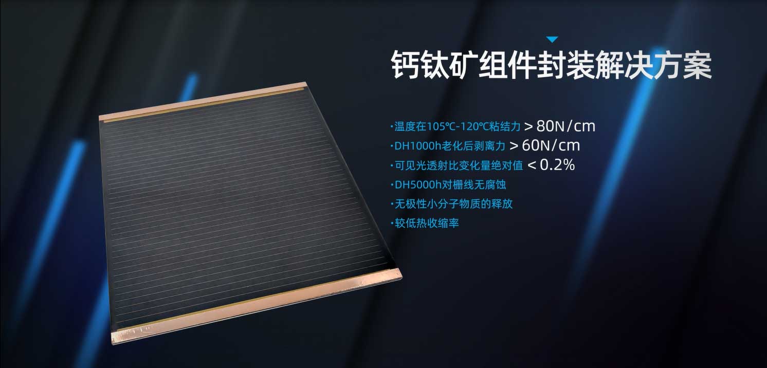 百佳年代新一代钙钛矿专用胶膜能够对敏感的叠层电池起到更好的保护作用,为钙钛矿和叠层钙钛矿组件稳定性提供更多支撑。目前,该胶膜产品已通过国检中心、苏州美华等第三方测试认证,并与协鑫、纤纳、极电、万度等众多头部钙钛矿企业进行技术对接和试样,与隆基、天合、曜能等客户在新型叠层钙钛矿电池的封装进行技术合作。