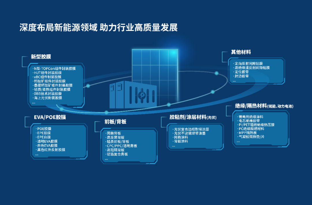 百佳年代深耕高分子功能薄膜产品研发创新已超17年,始终保持战略定力,紧跟市场发展趋势,积极构建新能源产业下的高分子功能薄膜产品体系,现已形成“产品种类丰富、下游应用广泛、核心产品突出”的业务格局。