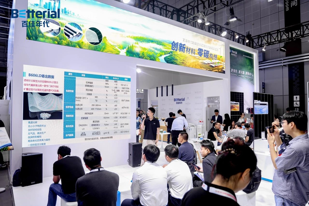 6月11-13日,全球光伏与储能行业盛会SNEC2025 在上海国家会展中心召开。作为光伏封装材料领域的头部企业,百佳年代以“创新材料,构想零碳”为参展主题,携全场景光伏封装技术及创新材料解决方案重磅亮相,不仅展示了在叠层钙钛矿、BC、沙漠光伏等前沿技术领域的突破,更通过权威认证与战略合作,进一步推动产品技术可靠性升级,助推行业高质量、可持续发展。