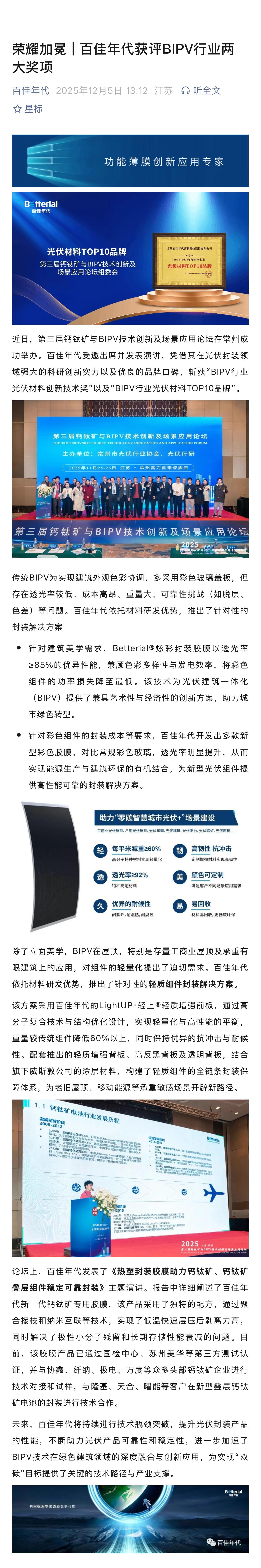 荣耀加冕 | 百佳年代获评BIPV行业两大奖项_百佳年代_高分子功能薄膜创新应用引领者-金沙js1005线路