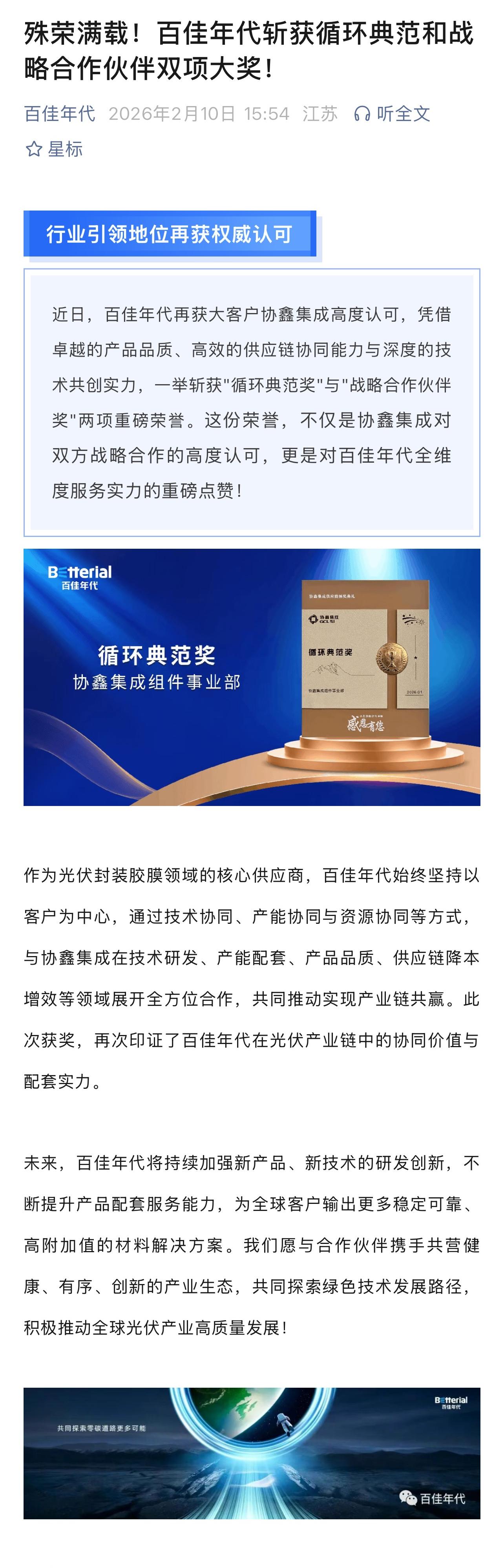 殊荣满载!百佳年代斩获循环典范和战略合作伙伴双项大奖!_百佳年代_高分子功能薄膜创新应用引领者-金沙js1005线路