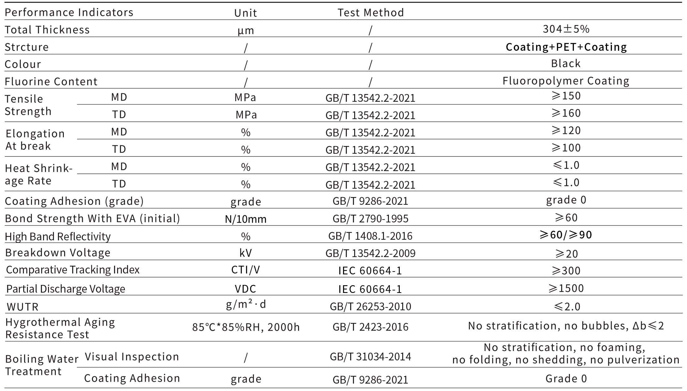 高反射黑色背板BPF-801B是以高反射、耐水解PET膜作为中间层,以耐候型的树脂为表层,具有优异的耐候、耐湿热颜色迁移、高反射率等性能。