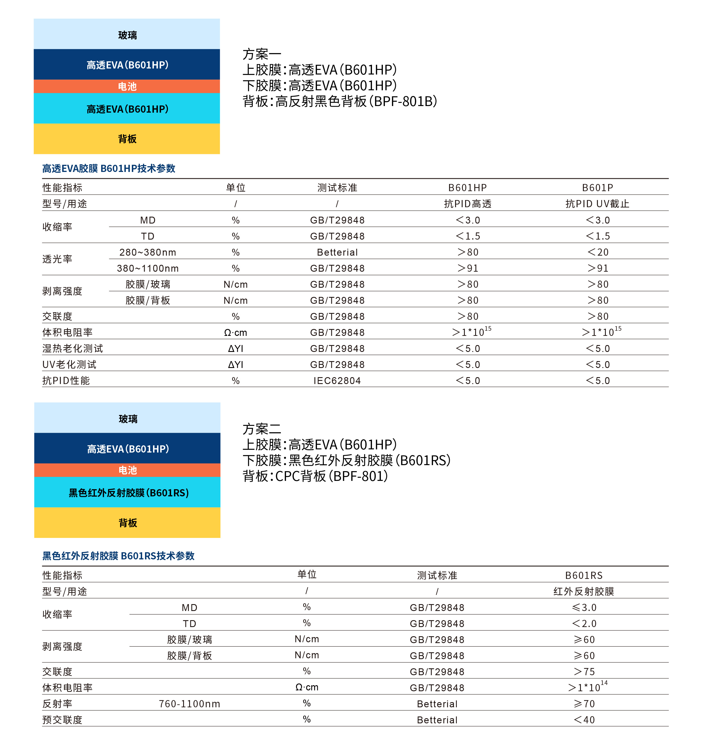 ▶下胶膜:高透EVA(B601HP)/黑色红外反射胶膜(B601RS)